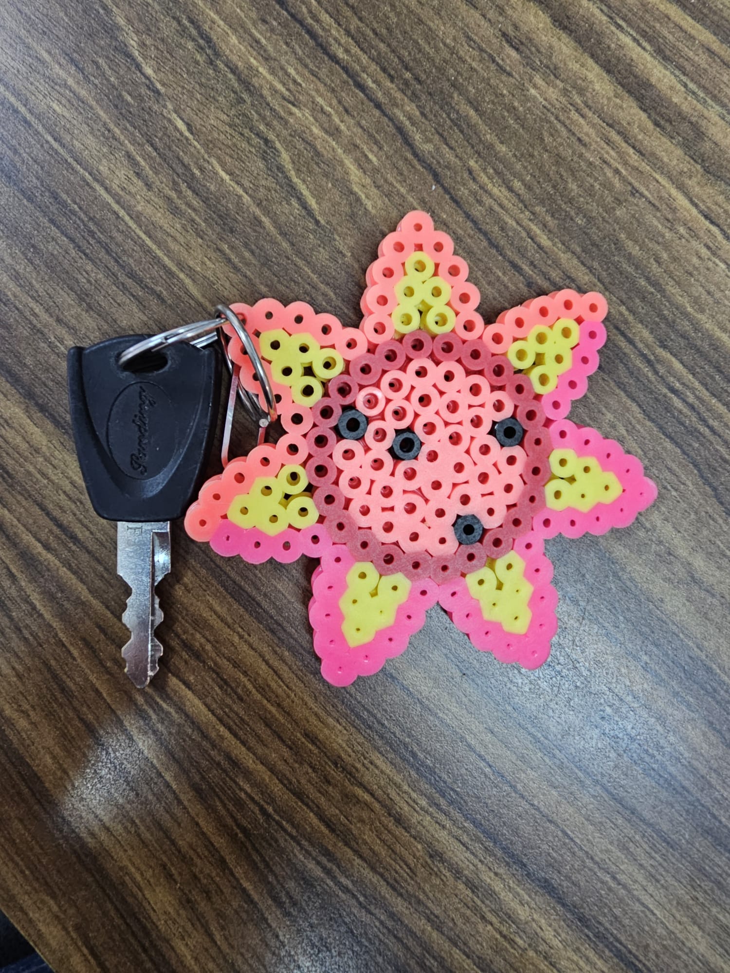 have a sun keychain made with perler beads! Enjoy your handmade sun keychain!